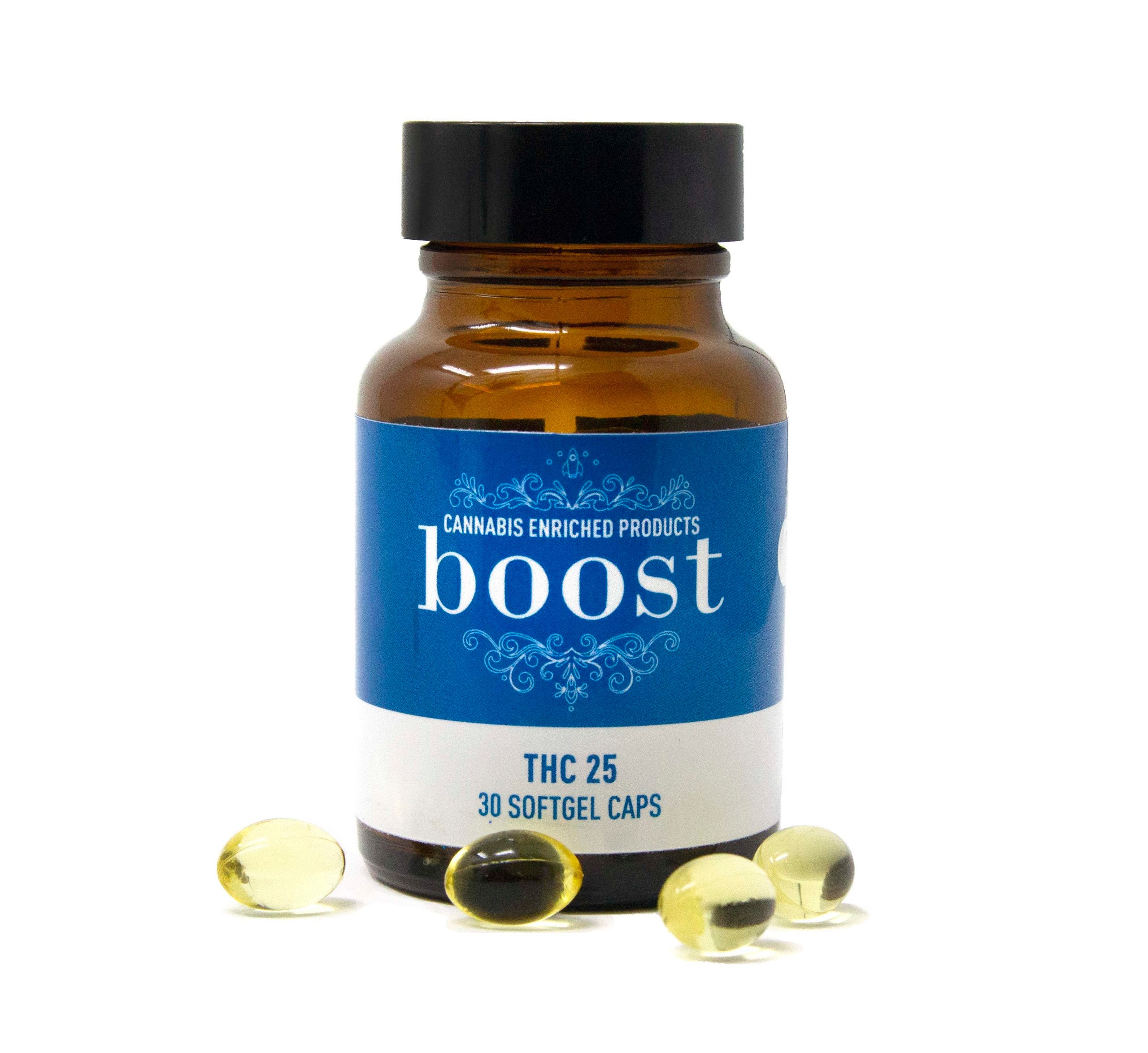 Each Boost Gel Caps – THC 25 bottle comes with 30 gel caps, made for convenience and discreetness.