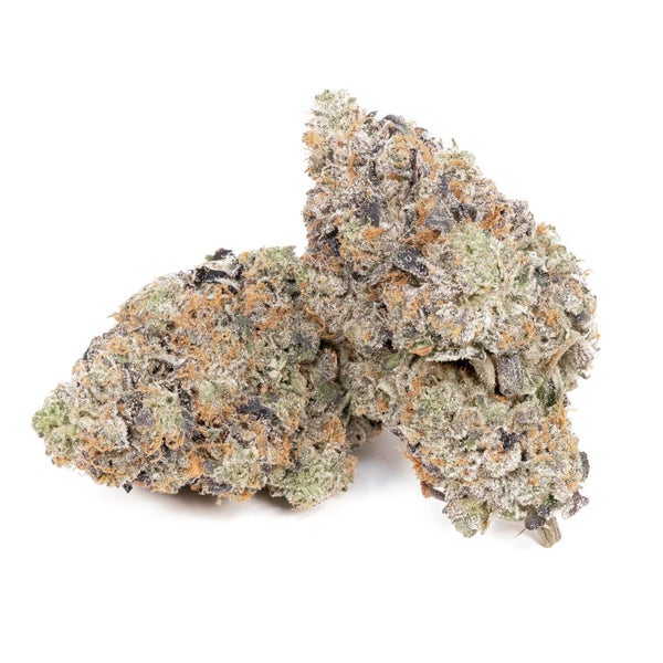 Thanks to its copious coating of short, yellow-trichome hairs, the buds of Garlic Sherbert boast long, curled purple and dark-green leaves. But don’t let the fluffy appearance fool you – when it comes to scent, this strain has some bite. A chemical odor with gassy tones awakens your senses from a strong hint of garlic and onion to a sweet berry musk.